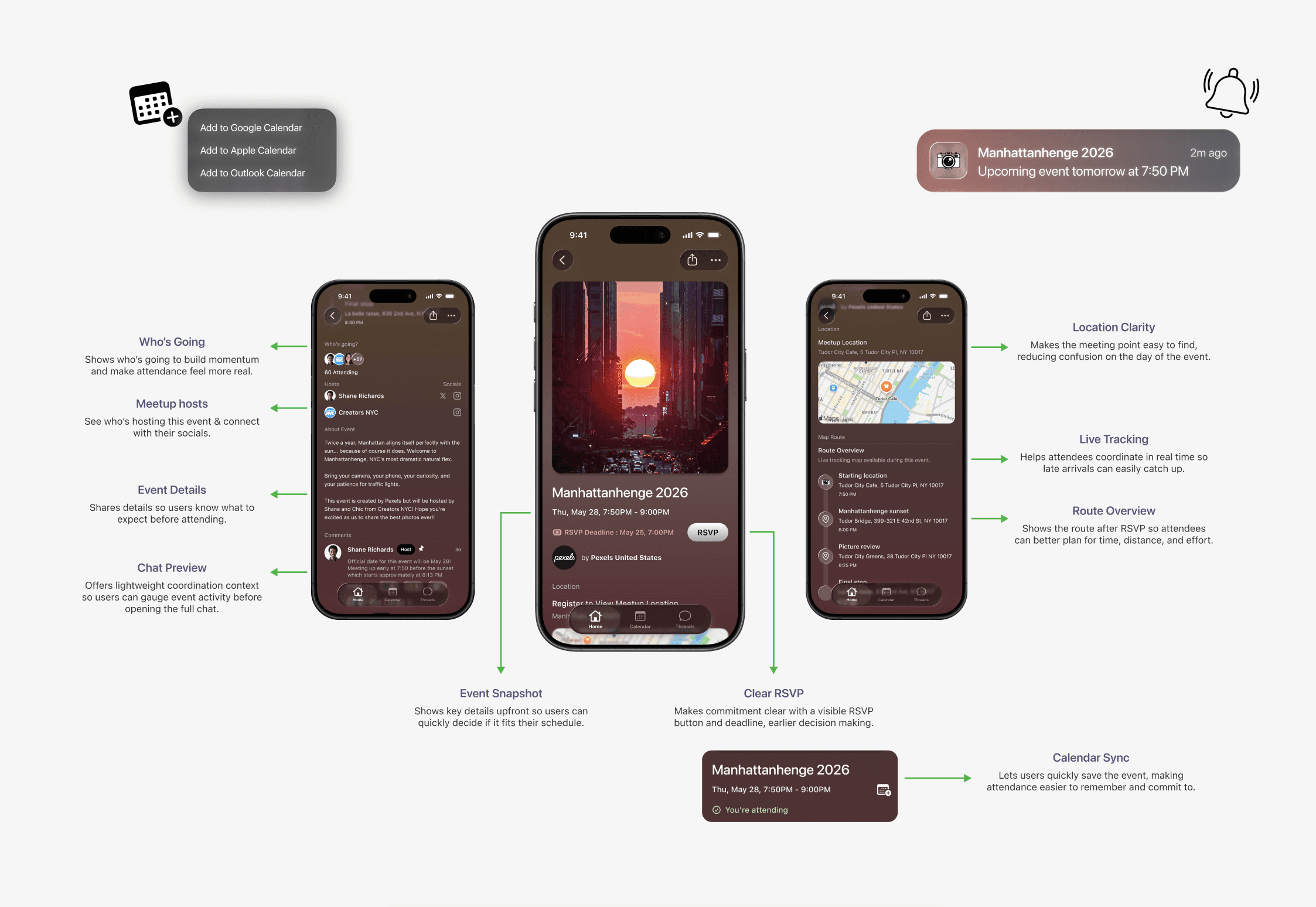 Despite NYC’s vibrant photowalk culture, photographers faced unnecessary friction moving from interest to attendance because discovery, scheduling, and communication lived across disconnected platforms.